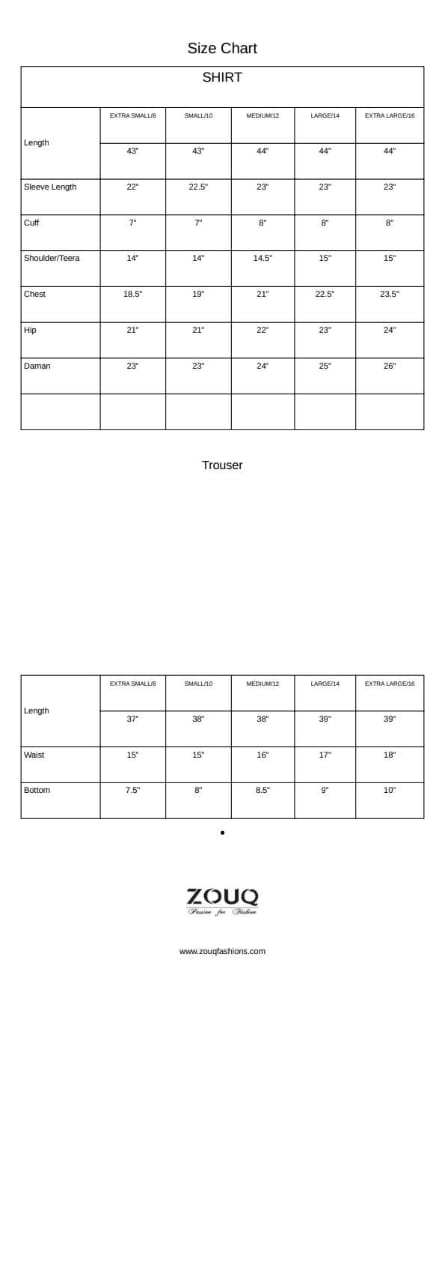 - Details: Neck long embroidery with tilla, embroidery sleeve and Trouser on embroidery Motifs both side