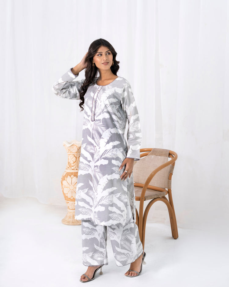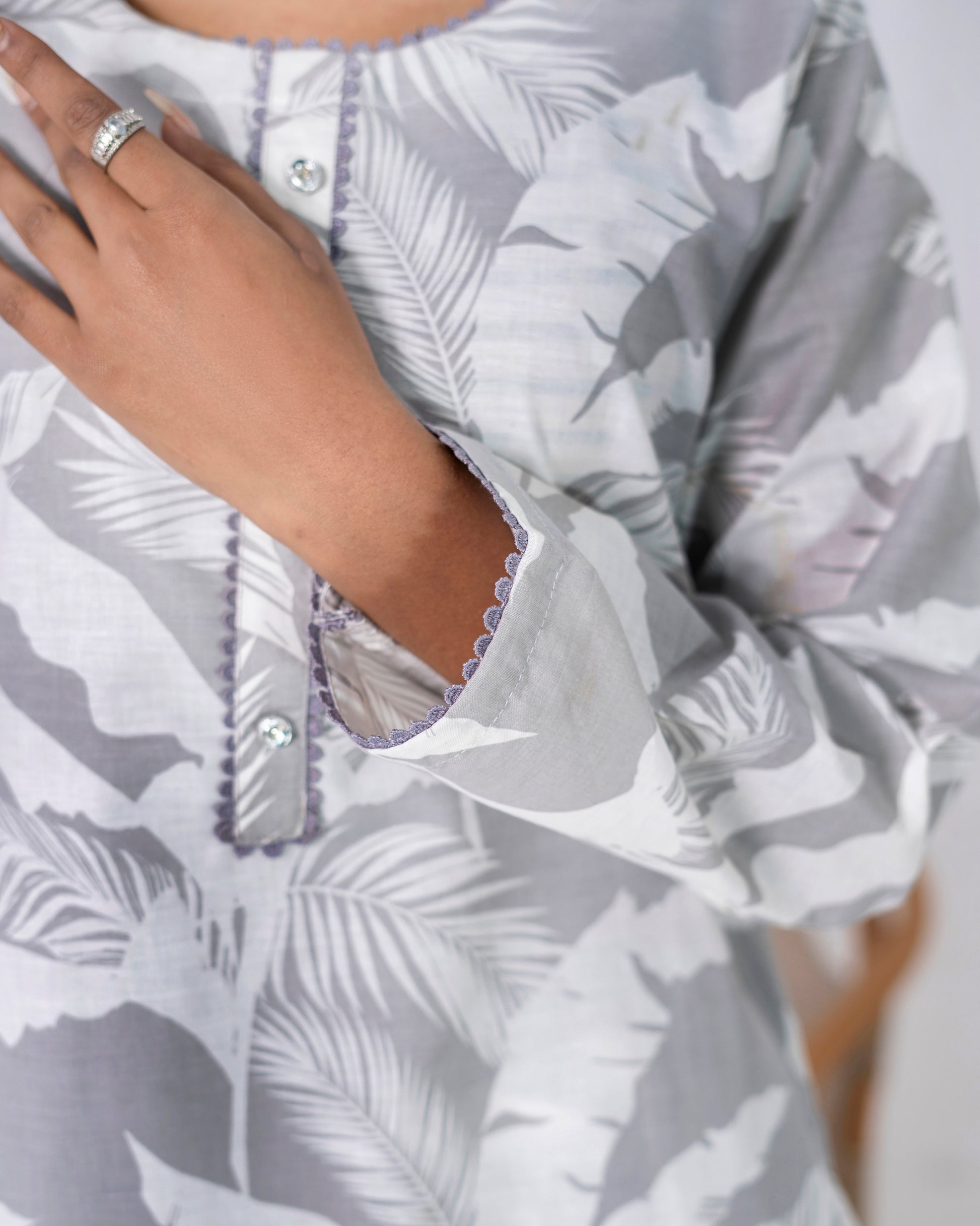 Introducing the new White & Gray Print Dress from ZOUQ FASHION. This stunning piece combines elegance and comfort, featuring intricate design on soft cotton fabric. Perfectly crafted for the mid-season, it's the ideal choice for those seeking style and sophistication in one beautiful outfit.