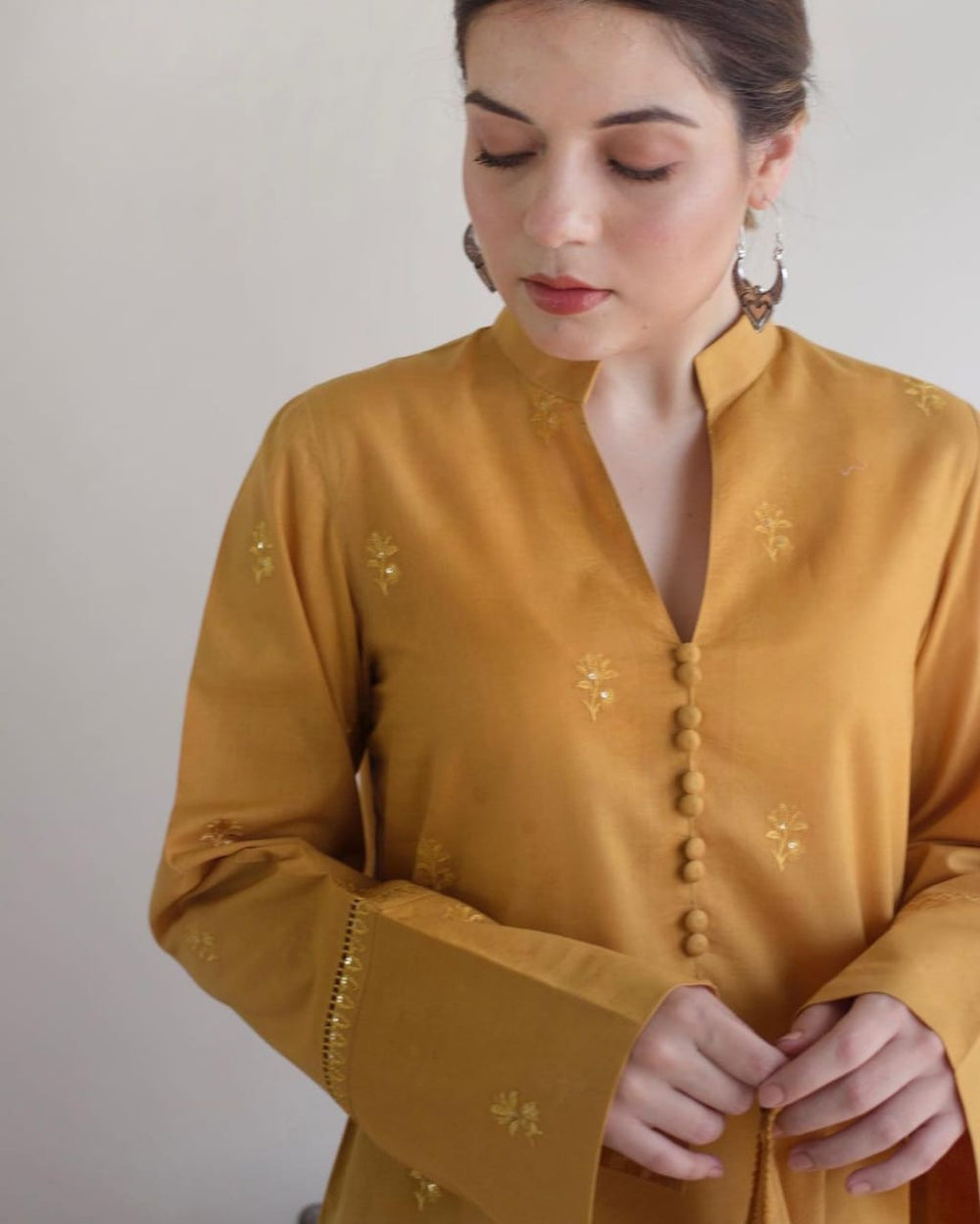 Golden Mustard Elegance: Embroidered Perfection in Every Stitch