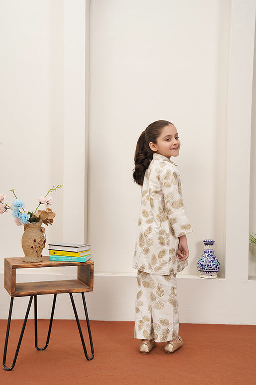 Description Add a touch of nature to your little one's wardrobe with this charming leaf print kurti and trouser set! Made from soft khaddar, this outfit is not only stylish but also comfortable for all-day wear. The eye-catching leaf print brings a playful vibe, perfect for casual outings or festive occasions. The kurti features a relaxed fit, while the matching trousers ensure easy movement and a trendy look.