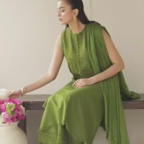Parrot Green 💚 Embroidered Stitched Outfit