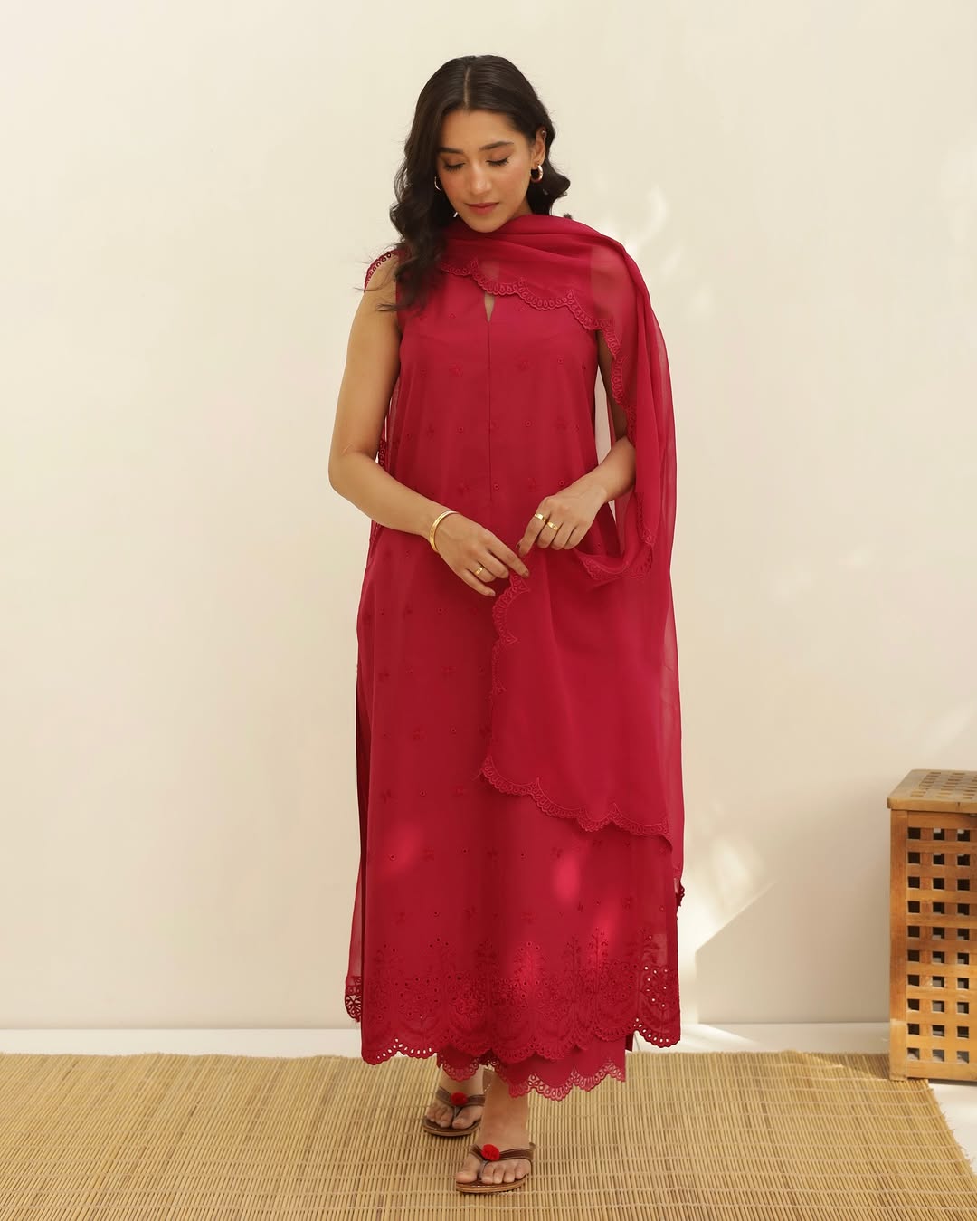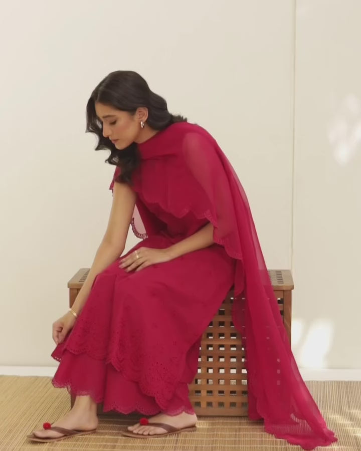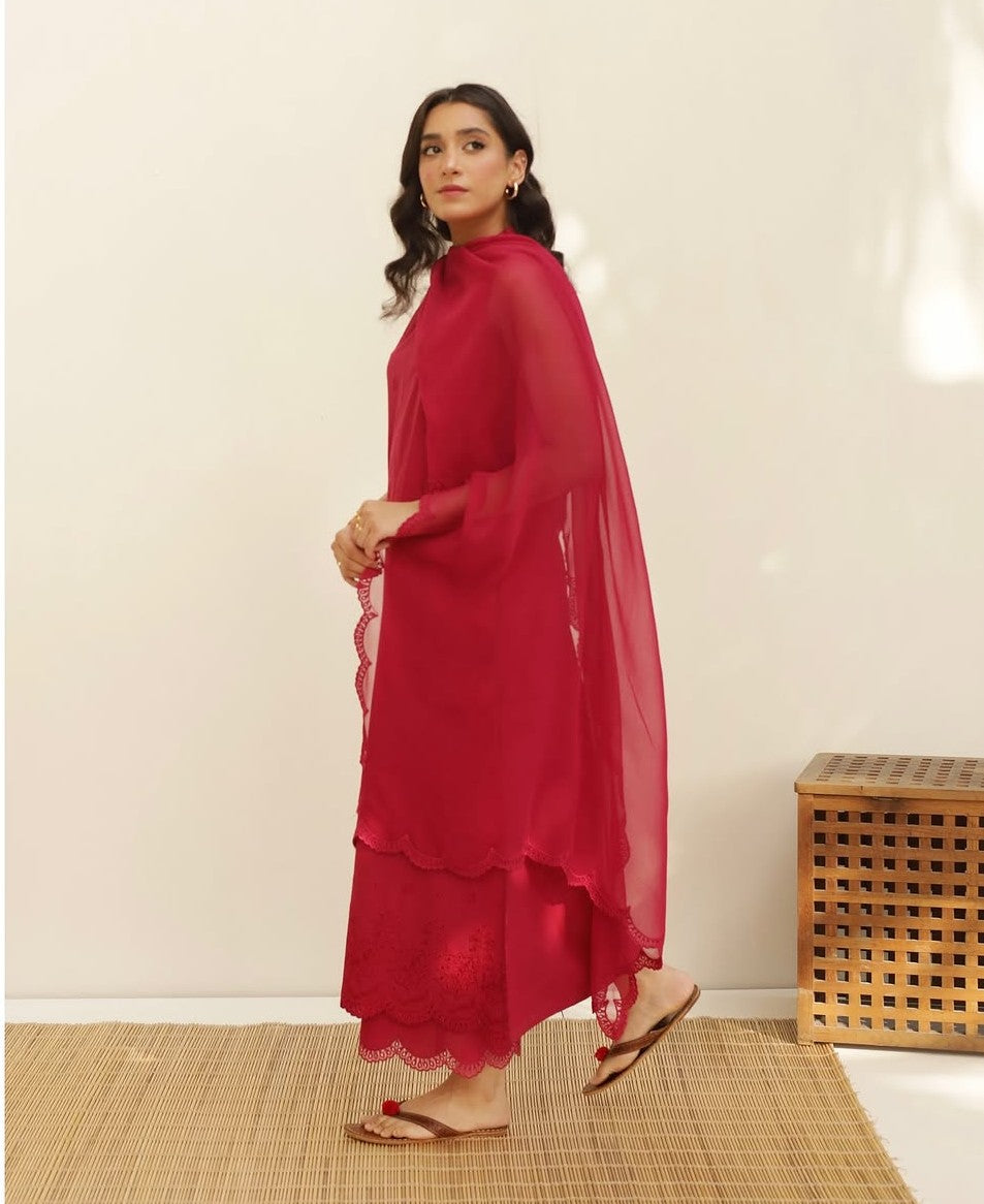 The beauty of the night, captured in fabric. Featuring delicate front embroidery paired with an elegantly embroidered or Chiffon dupatta.