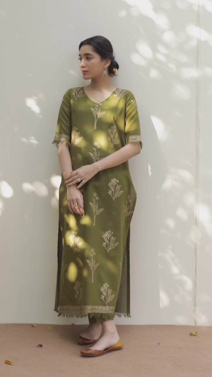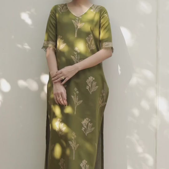 Olive Green Embroidered Lawn Dress – 2-Piece